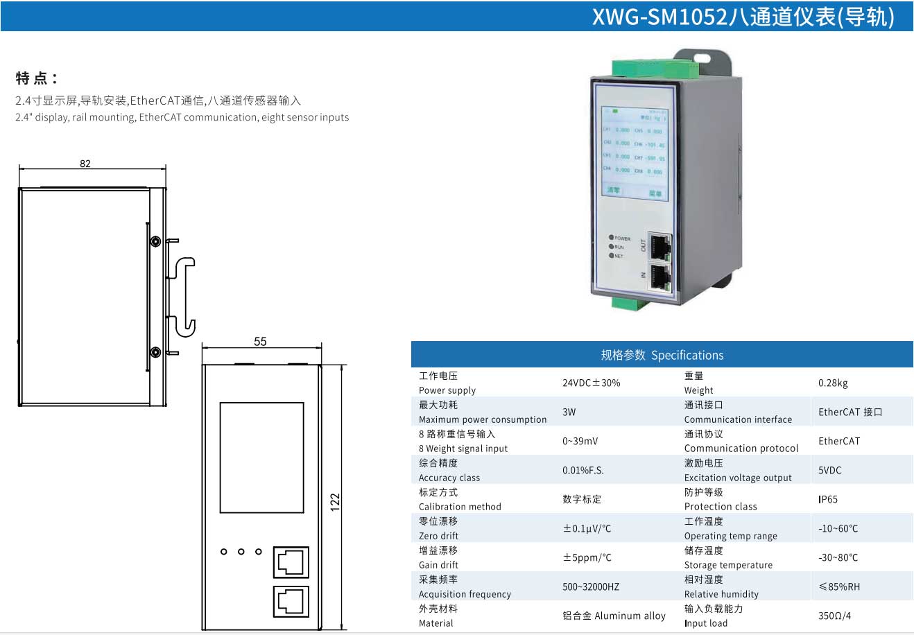XWG-SM1052八通道仪表(导轨)